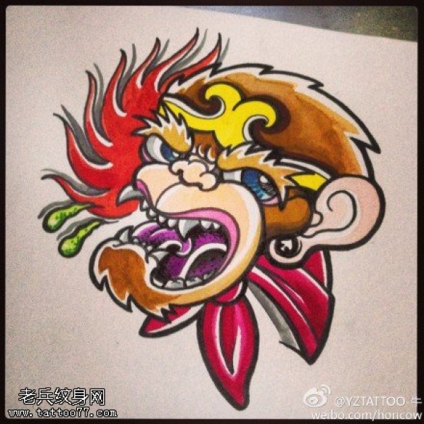 彩色卡通猴子纹身手稿图案
