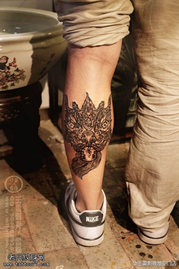 老虎图腾纹身 多款黑灰纹身点刺技巧老虎纹身图案