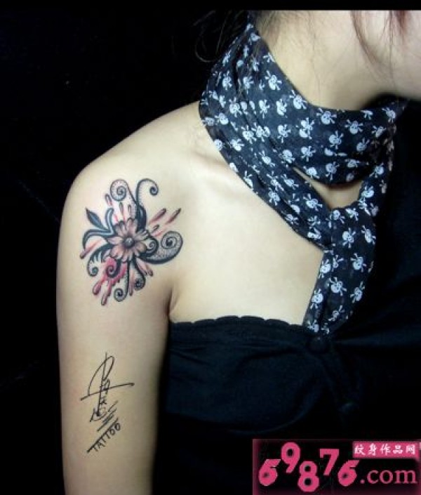 女性肩膀上多款漂亮的花朵纹身图案