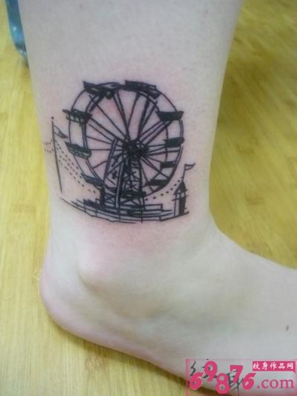 脚踝水车时尚纹身图片
