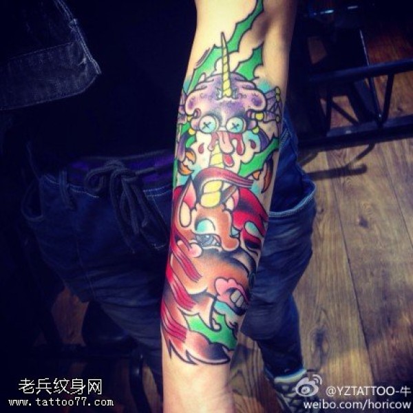 手臂独角兽纹身图片