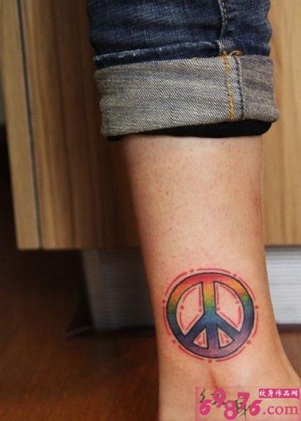 脚踝彩虹色反战LOGO纹身图片