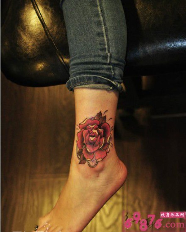 娇艳玫瑰花脚踝纹身图片