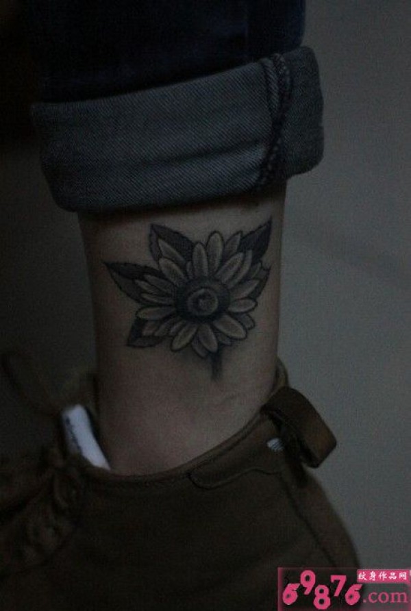 女生脚踝向日葵纹身_脚部纹身图案大全_纹身图吧