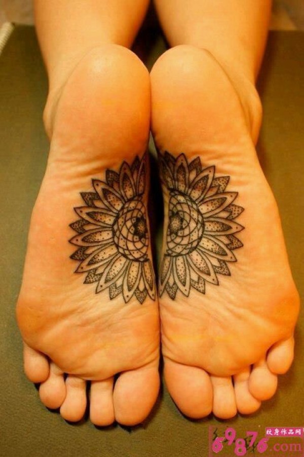 男人脚底向日葵个性纹身图片