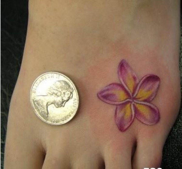 脚背硬币大小的素馨花纹身图片