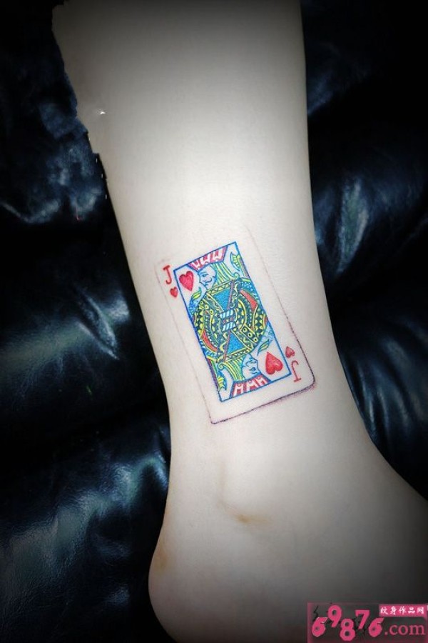 扑克红心j脚踝纹身图片