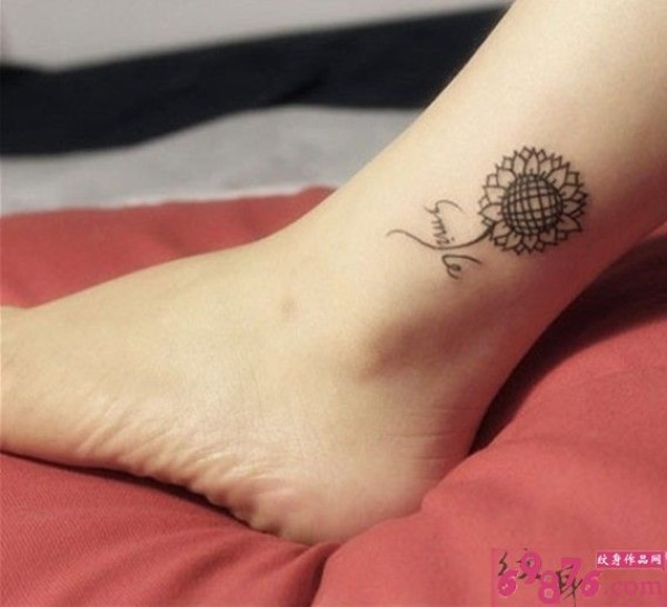 女生脚踝向日葵纹身_脚部纹身图案大全_纹身图吧