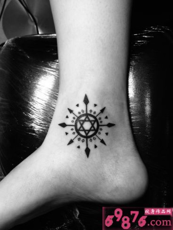 另类指南针脚踝纹身图片