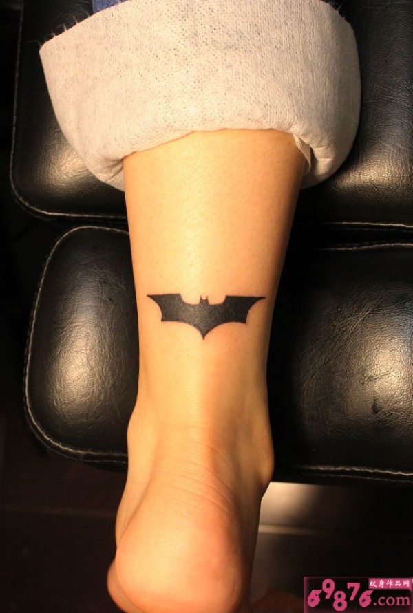 后脚跟黑色蝙蝠侠标志纹身图片图片