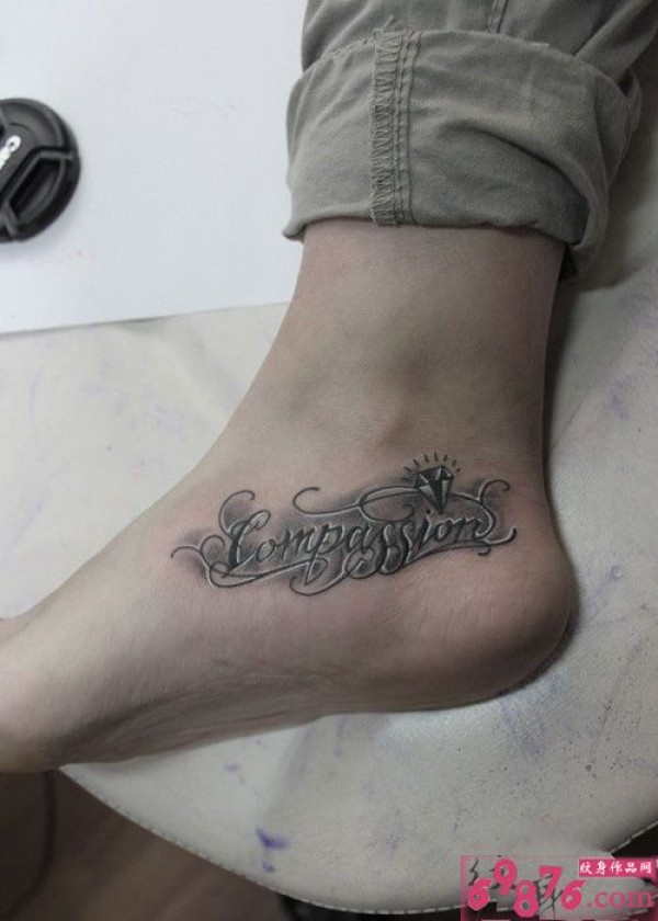 花体英文脚背钻石纹身图片