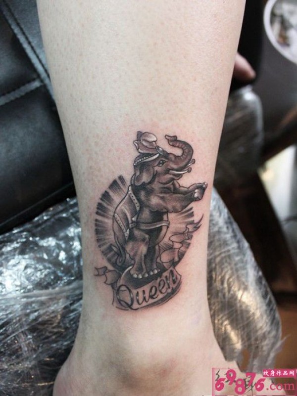 马戏团小象创意脚踝纹身图片