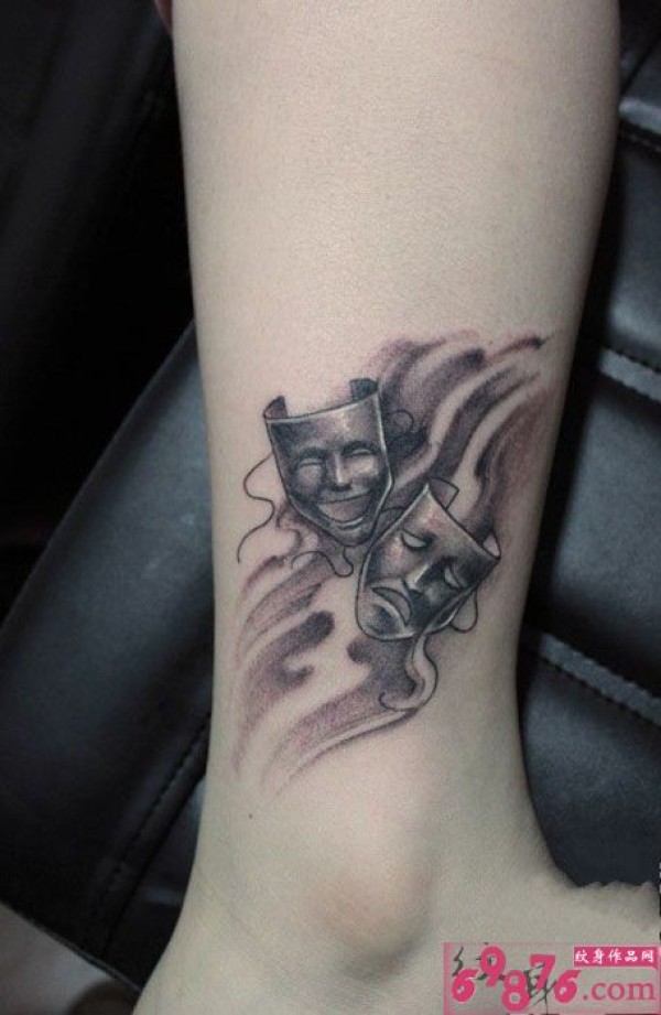 云雾面具脚踝纹身图片