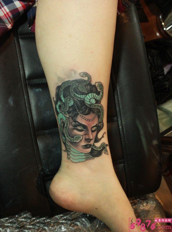 邪恶美杜莎脚踝纹身图片