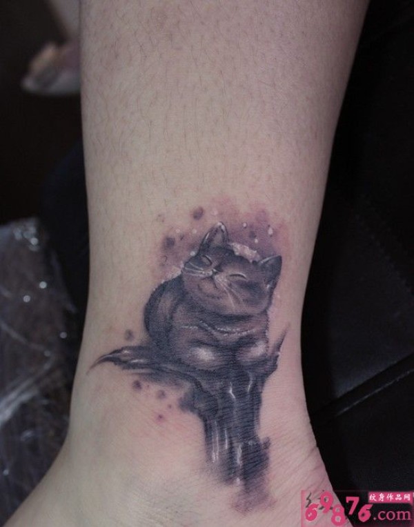 可爱萌猫咪脚踝纹身图片