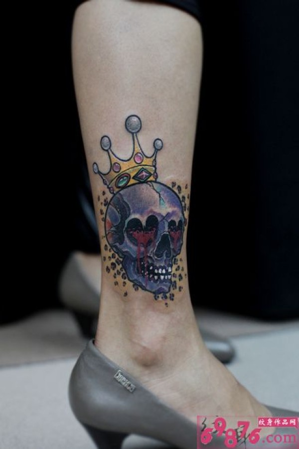 滴血骷髅皇冠创意脚踝纹身图片
