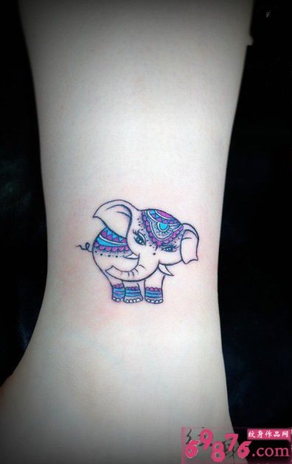 小清新小象脚踝纹身图片