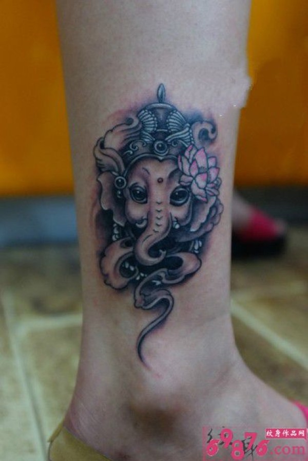 小象神脚踝纹身图片
