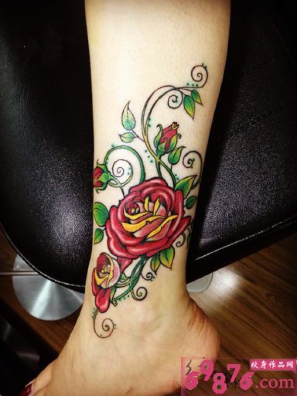 娇艳玫瑰脚踝纹身图片