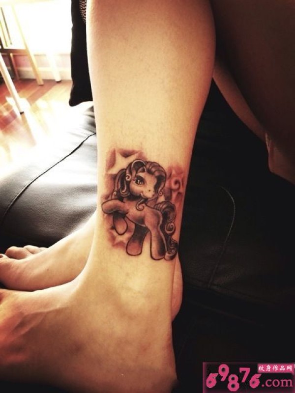 可爱小马创意脚踝纹身图片
