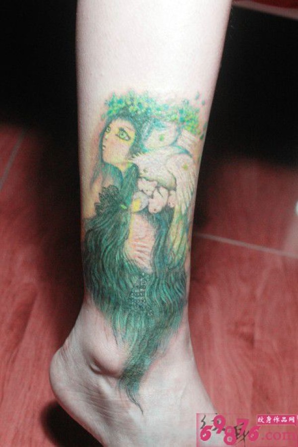 唯美精灵美女脚踝纹身图片