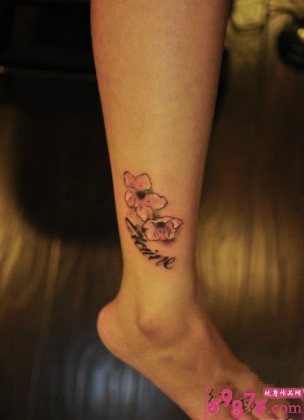 清新小桃花脚踝纹身_脚部纹身图案大全_纹身图吧