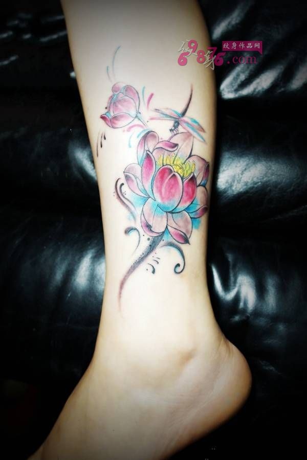 小清新荷花时尚脚踝纹身图片