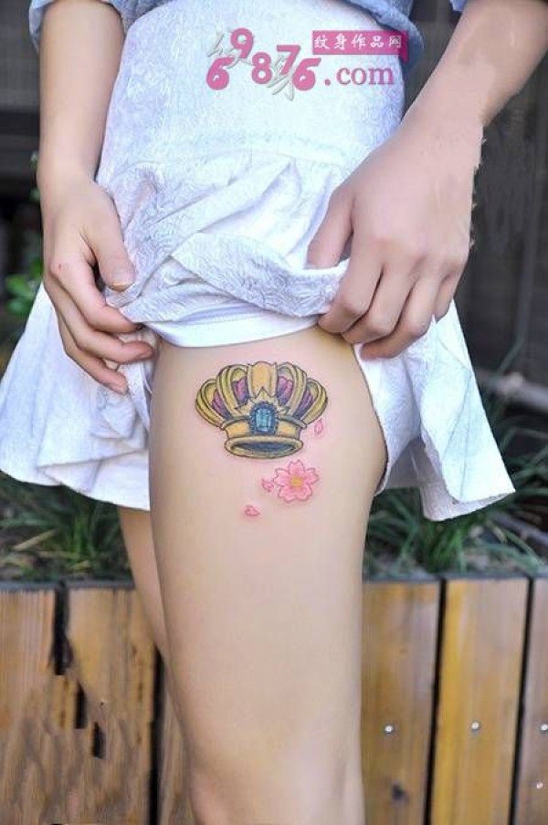 樱花小皇冠美腿纹身图片