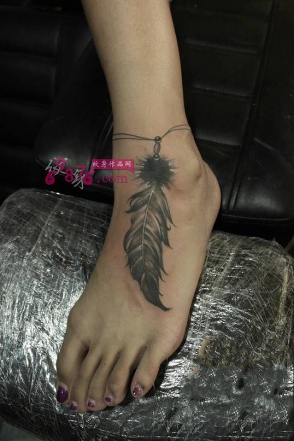 羽毛脚链时尚纹身图片