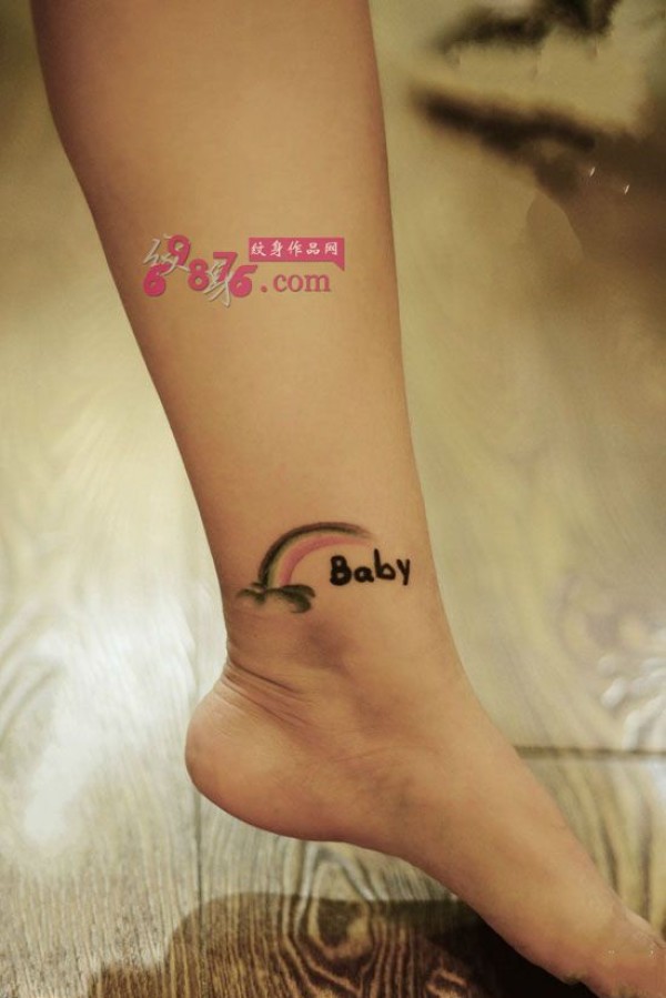 小清新彩虹脚踝纹身图片