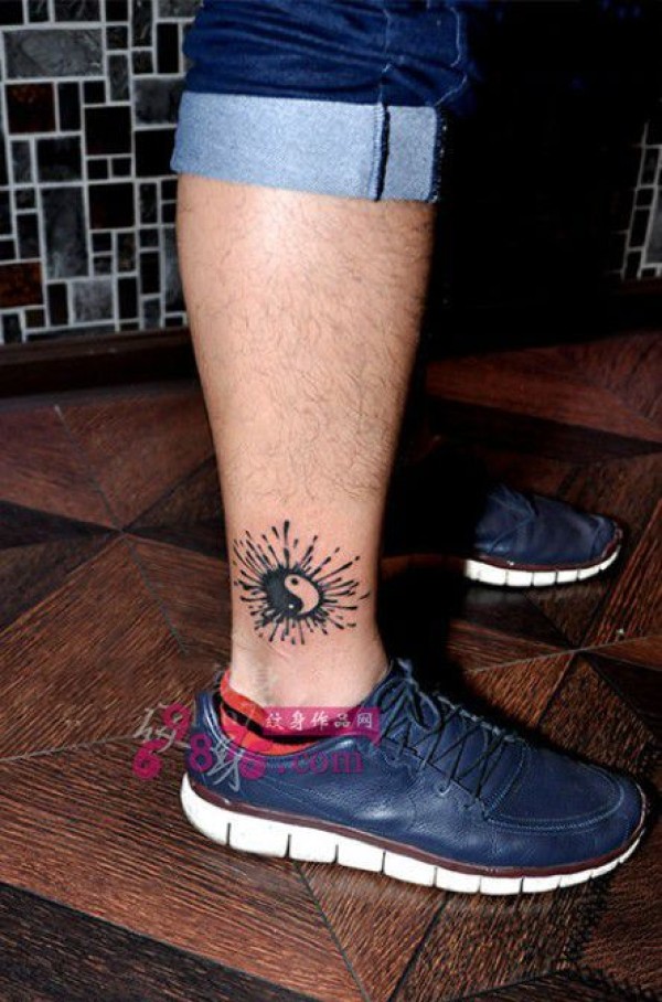 创意喷墨八卦图脚踝纹身图片