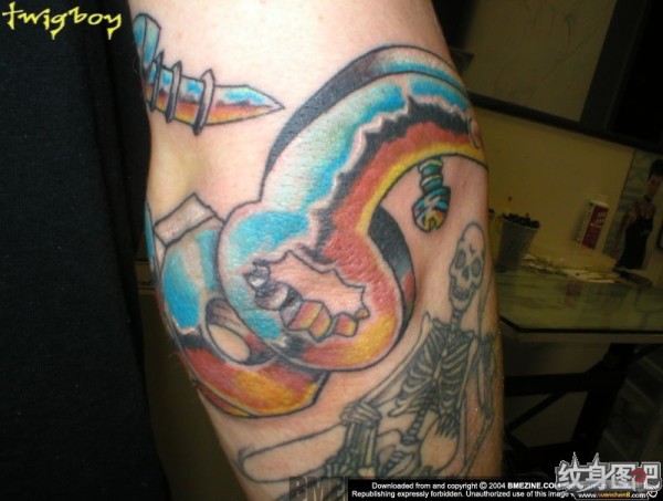 骷髅架子和彩色螺丝纹身