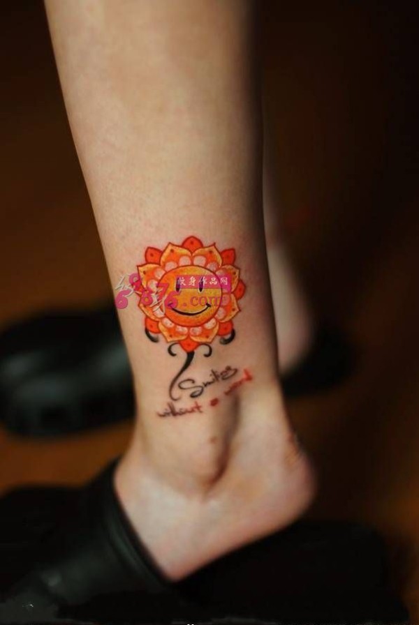 女生脚踝向日葵纹身_脚部纹身图案大全_纹身图吧