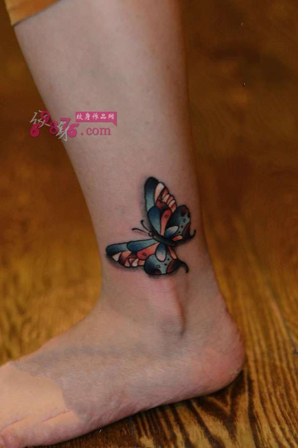 彩色蝴蝶脚踝时尚纹身图片