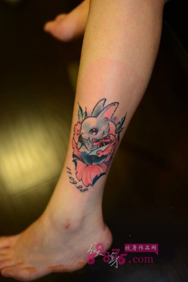 可爱萌兔子脚踝纹身图片