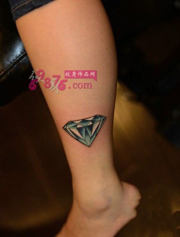 小清新蓝色钻石脚踝纹身图片