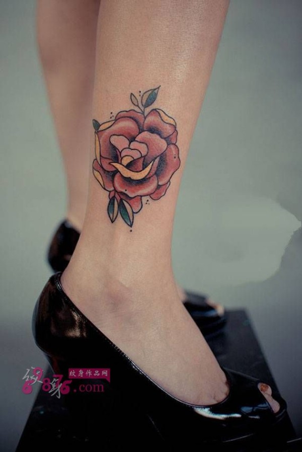 妖艳红玫瑰脚踝纹身图片