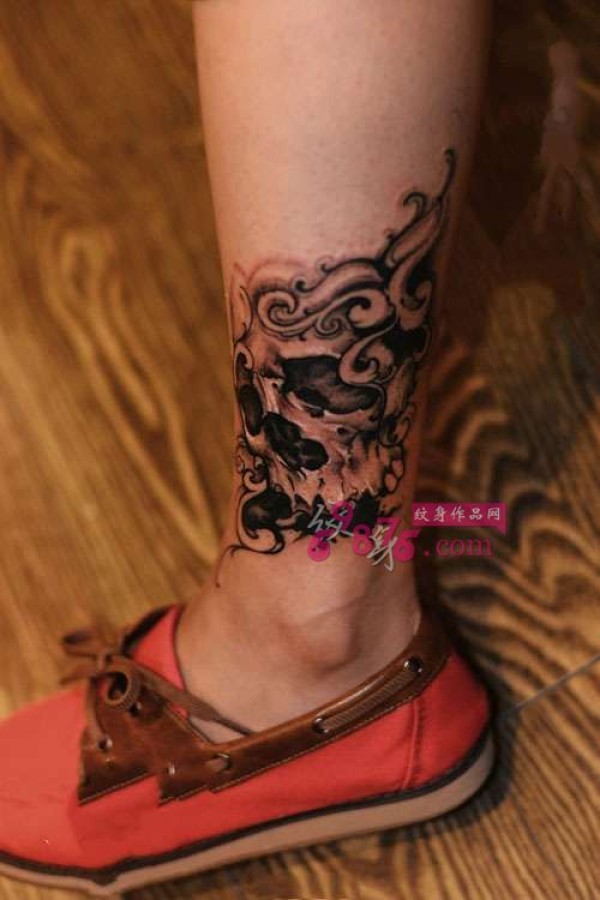 创意黑灰骷髅脚踝纹身图片