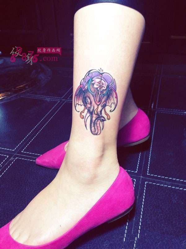 可爱小彩象脚踝纹身图片