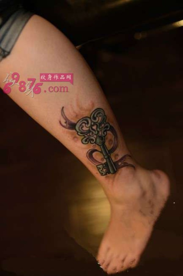 复古钥匙脚踝纹身纹身图片