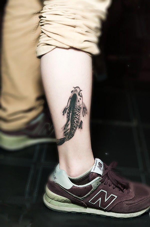 传统鲤鱼花小腿纹身_腿部纹身图案大全_纹身图吧