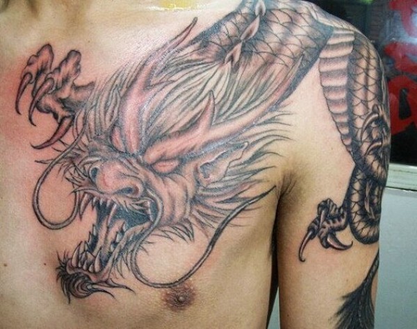 龙纹身手稿_一组老传统黑灰龙手稿纹身图案