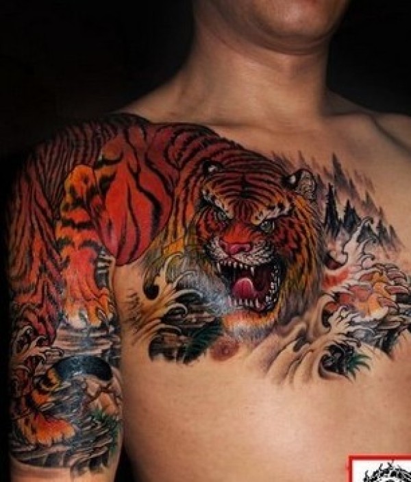 霸气半胛老虎纹身_动物纹身图案大全_纹身图吧