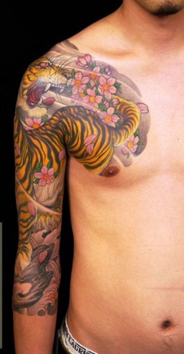 霸气半胛老虎纹身_动物纹身图案大全_纹身图吧