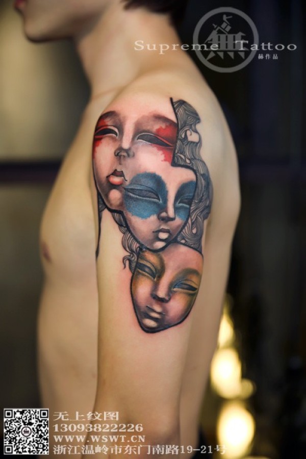 能面万媚纹身手稿_52张日式能剧面具纹身手稿图案素材欣赏