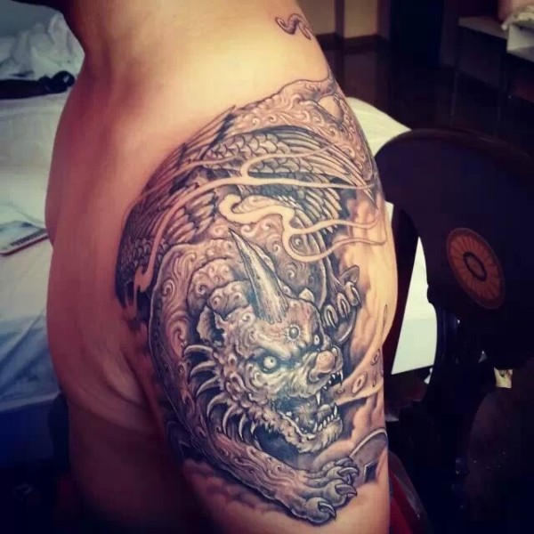 半甲貔貅个性纹身