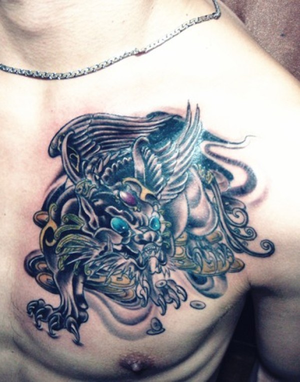 胸部霸气的神兽貔貅纹身