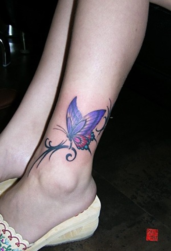 脚踝漂亮小巧的蝴蝶纹身