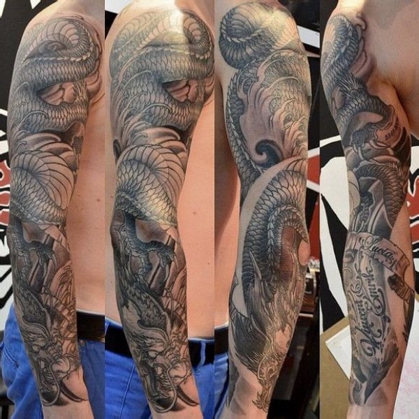 超酷炫酷的花臂龙纹身