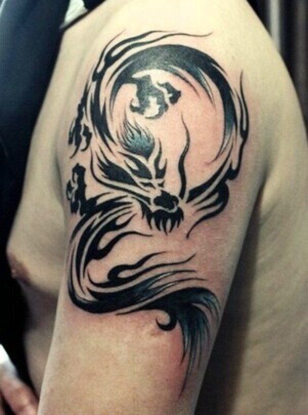 龙纹身手稿_一组老传统黑灰龙手稿纹身图案
